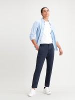 Calças chino cropped básicas. Têm botão, fecho de correr e dois bolsos traseiros.Cuidado de lavado