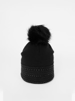 Gorro de malha canelado com pompom e detalhes metálicos no acabamento.Envíos