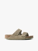 Sandálias slip-on em suede com fivelas no topo, biqueira redonda e sola em borracha.Devoluciones