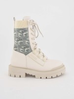Botas mulher com malha com padrão. Têm cordões de 9 passadas, biqueira redonda e sola em borracha.Devoluciones