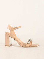 Sandálias mulher de salto alto com 7 cm. Têm fivela metálica no tornozelo, aplicação de pedras brilhantes no topo, biqueira quadrada e sola de borracha.Envíos