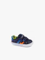 Sapatilhas com detalhe de pesponto. Têm duas tiras de velcro, biqueira redonda e sola de borracha.Envíos