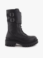 Combat boots mulher com fecho de correr na lateral. Tem cordões, biqueira redonda e sola de borracha com 4,5 cm.Envíos