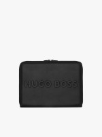 Pasta, logo em relevo, fecho de correr, slots para cartões, caderno A4.Envíos
