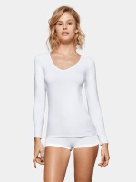 Camisola interior mulher em algodão. Tem decote redondo e manga comprida.Cuidado de lavado