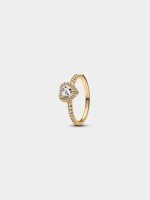 - Anel com cristal man-made vermelho em forma de coração no centro, destacando-se com pavé cintilante na moldura da cravação e ao longo da frente do aroEnvíos