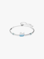 Pulseira bangle com cisne nobre, realçado em cristais brancos, verdes e azuis. Duas pedras quadradas azuis brilham nos dois lados do cisne. Tem fecho deslizante.Devoluciones
