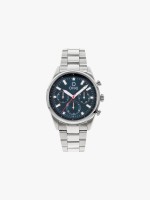 Relógio analógico masculino com diâmetro de 44mm, fundo azul e calendário.Envíos