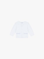 Casaco de malha bebé, com decote redondo e botões. Tem acabamentos canelados.Envíos