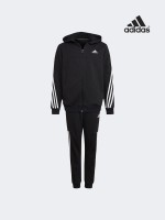 Fato de treino menino em algodão. Tem casaco com capuz, fecho de correr e logo e riscas cor contrastante. Tem calças com cintura elástica e detalhes da marca.Especificación técnica