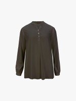 Blusa básica mulher. Tem decote em V, manga comprida e botões.Cuidado de lavado