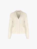 Cardigan mulher em algodão, com malha canelada. Tem decote em V, três botões e dois bolsos patch frontais.Cuidado de lavado
