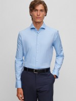 Camisa homem regular fit, em algodão e com colarinho. Tem punhos abotoados.Cuidado de lavado