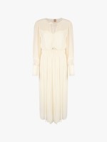 Vestido comprido com padrão em relevo. Tem decote em V, tira de laçada no pescoço, manga comprida com punhos abotoados e cintura elástica.Envíos