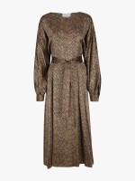 Vestido midi em seda de decote redondo. Tem faixa do mesmo material na cinta e punhos abotoados.Cuidado de lavado