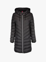 Blusão comprido com padrão acolchoado, capuz ajustável por cordão, manga comprida, fecho de correr e bolsos.Envíos