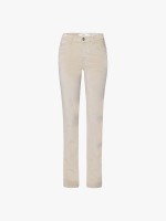 Calças mulher slim fit em algodão. Têm botão, fecho de correr oculto por carcela e bolsos.Cuidado de lavado