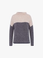Camisola de malha mulher color block com meia gola, padrão estampado e ombros descaídos.Cuidado de lavado