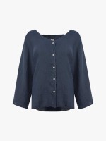 Túnica mulher em linho, com decote em V e botões. Tem manga comprida e detalhe elástico nas costas.Cuidado de lavado