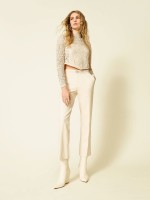 Calças straight fit com vinco, bolsos e fecho de correr na lateral. Detalhe metálica da marca na cintura.Envíos
