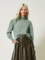 Camisola em caxemira com gola alta, manga comprida e acabamentos canelados.Envíos