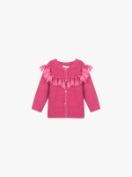 Casaco de malha perfurada de decote redondo com botões e pormenor de aplicações.Cuidado de lavado