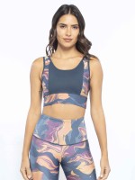 Top desportivo mulher com padrão estampado.Cuidado de lavado