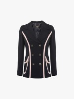 Blazer bicolor abotoado com gola em lapela e dois bolsos de aba laterais.Cuidado de lavado