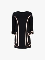 Vestido bicolor de decote redondo e corte reto com dois bolsos de aba e punhos abotoados.Cuidado de lavado