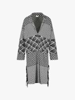 Casacão mulher em algodão, com gola em lapela e padrão estampado. Tem botões e franjas nas laterais do acabamento.Cuidado de lavado