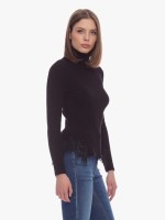 Camisola canelada com gola alta, manga comprida e detalhes laterais em renda.Envíos