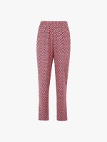 Calças mulher fluídas, com padrão estampado. Têm cintura elástica.Cuidado de lavado