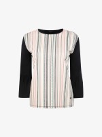 Camisola estampada na frente. Tem decote redondo e mangas compridas com punhos em folho.Cuidado de lavado