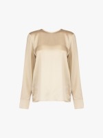 Blusa acetinada com decote redondo, botão com lágrima nas costas e manga comprida com punhos abotoados.Envíos