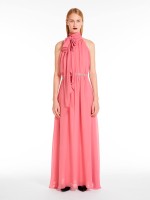 Vestido longo com corte fluido, sem mangas, com decote halter, cintura ajustada com cinto fino incluído.Especificación técnica