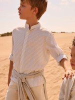 Camisa com Gola Mandarim às Riscas / 1
