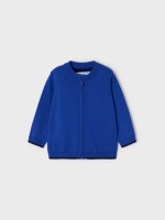Casaco de malha menino em algodão. Tem decote redondo, manga comprida, fecho de correr e acabamentos canelados com risca em cor contrastante.Cuidado de lavado