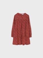 Vestido de manga comprida com punhos abotoados. Tem estampado floral, decote redondo e abertura em gota atrás.Envíos