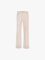 Calça à boca de sino com botão, fecho de correr e bolsos.Cuidado de lavado