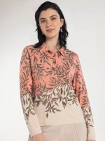 Polo com padrão floral, colarinho, botões e manga comprida.Envíos