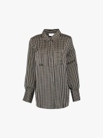 Camisa com padrão, colarinho, botões, bolsos no eito e manga comprida com punhos abotoados.Envíos