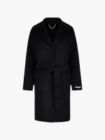 Sobretudo em lã com gola de lapela, manga comprida, bolsos e cinto combinado.Envíos