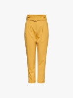 Calças retas com cinto, fecho de correr e bolsos.Cuidado de lavado