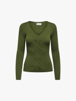 Camisola de malha com padrão texturado, decote em V e manga comprida.Especificación técnica