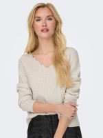 Camisola de malha canelada com decote em V irregular e manga comprida.Especificación técnica