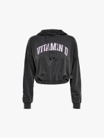 Sweatshirt mulher cropped em algodão, com capuz ajustável por cordão. Tem detalhe estampado na frente, punhos canelados e acabamento elástico.Envíos