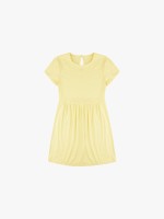 Vestido menina plissado, em algodão. Tem decote redondo, manga curta e abertura em lágrima abotoada nas costas.Envíos