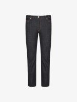 Calças de ganga regular fit. Têm botão, fecho de correr e cinco bolsos.Cuidado de lavado
