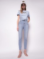 Calças de ganga mulher skinny fit. Têm fecho de correr, bolsos, rasgão na perna e cinto com detalhe da marca metálico.Envíos