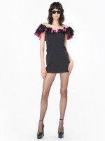 Vestido justo com decote em V profundo adornado por folhos e fecho de correr oculto nas costas.Envíos